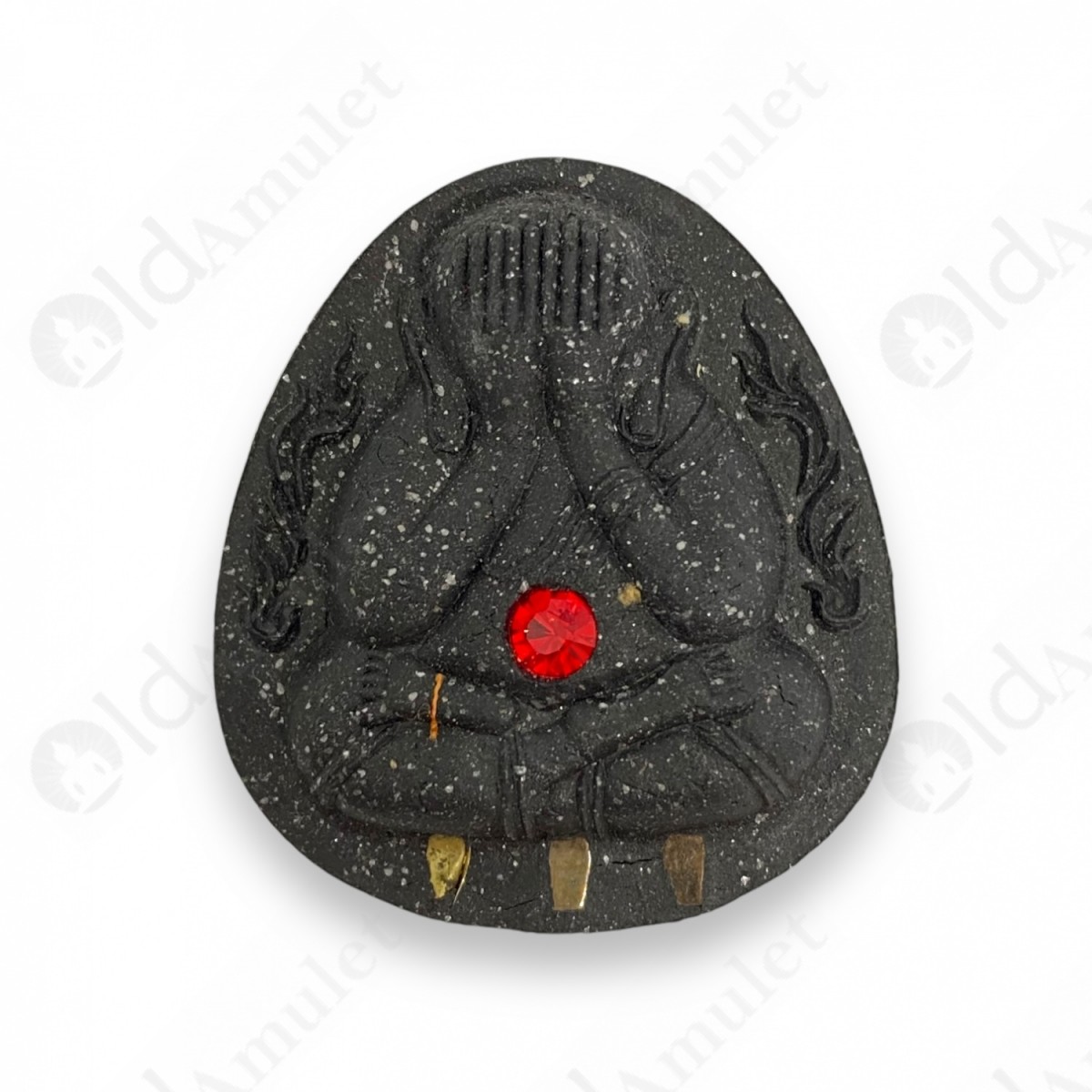 This is Phra Pidta 3Takud 1Red Gem Black Herb + Monk Rope, Rub-Sub45 was made by LP CHUEN of Wat Ta-Ei (Luang Phor) (from Burirum, THAILAND) in B.E.2545 (2002) and made of Powder mixed. Power of this amulet will bringing owner has a Help and Improve your Life better.