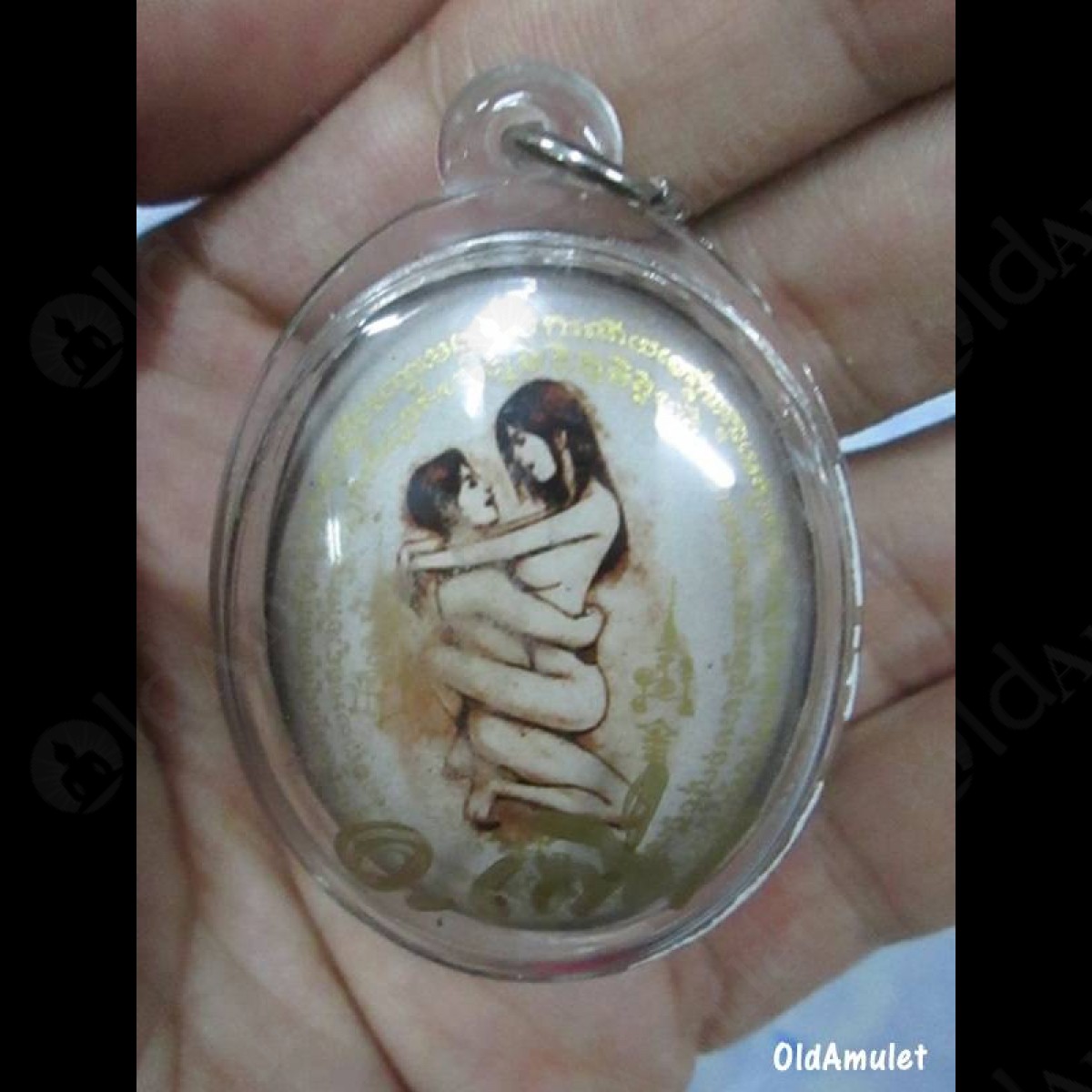 This is In Koo Ba-Cha-Dta Rear Face Locket With 2takruts Maha Saneh Ajar was made by AC PERM Prai-Dam (Archan) (from Bangkok, THAILAND) in B.E.2555 (2012) and made of Photo & Powder Mix back side. Power of this amulet will bringing owner has a Charming love & sexual attraction.